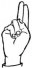 На ћирилици написано КОСТАДИН ТРМЧЕВИЋ састоји се из 16 слова [?]. Исписано ћириличном једноручном азбуком за глувонеме: